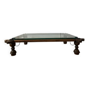 Table basse bois et fer forgé doré style 1940