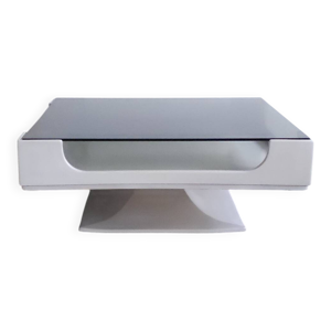 Table basse de l'ère spatiale des années 1970, cadre de haute qualité en plastique blanc.