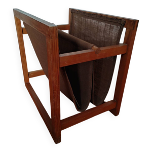 Table basse en pin et lin avec porte-revues par Karin Möbring, Suède
