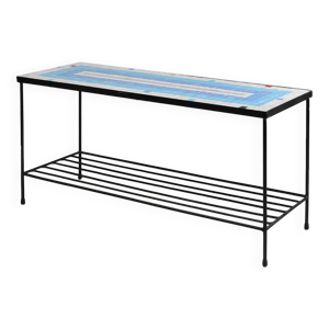 Table basse mosaïque bleue vintage / table à plantes / table d'appoint