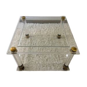 Table basse Plexi et alu doré, Pierre Vandel, 1970s