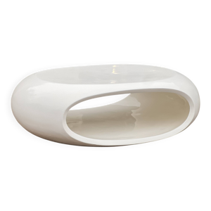 Table basse ''space age''. Piètement acier, dalle de verre. Circa 1970