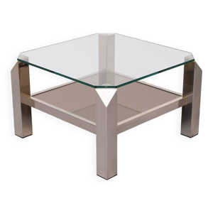 Table basse vintage Belgo Chrom coulissante avec bar caché - années 1970