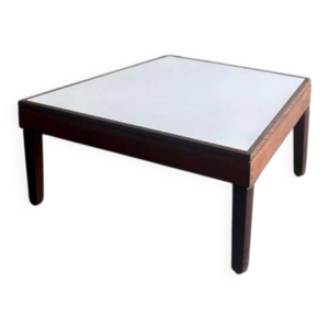 Table d'appoint élégante en bois brun foncé, style années 1950, rare et raffinée. Dimensions : 134 × 67 × 67 cm.