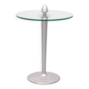 Table d'appoint ronde vintage. Table basse ronde en verre épais. Table de design industriel robuste.