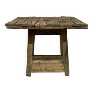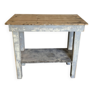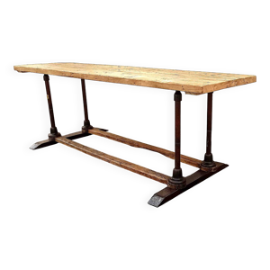 Table d'atelier en fer et plateau bois ancien