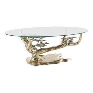 Table de salon en laiton doré et verre noir par le studio mercier pour liwan's