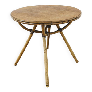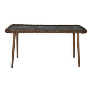 Table en bois et osier des années 60