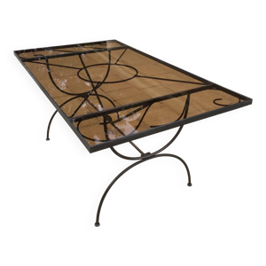 Table en fer forgé à piétement sculptural, ornée de volutes