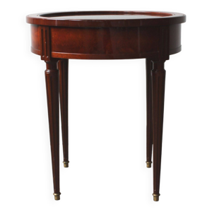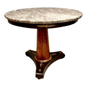 Table guéridon Empire en acajou et bronze, marbre gris Saint-Anne à gorge, vers 1800