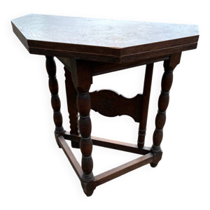 Table pliante octogonale ancienne française en chêne massif, vers 1850