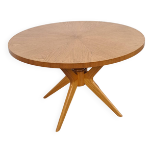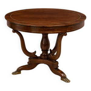 Table ronde 6 pieds fuseaux en acajou, extensible