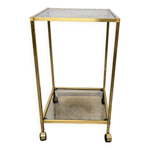 Table roulante en laiton et acajou à plateaux amovibles de style néo-classique