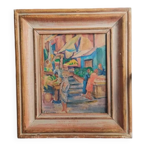 Tableau à l'huile sur toile cour de la mosquée du pacha à Oran 1948