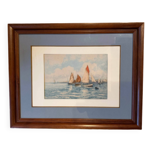 Tableau ancien 1900 signé R. Argivier – Scène maritime