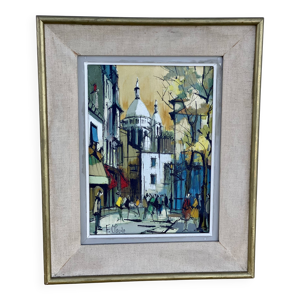 Tableau ancien Rue de Saint Germain animée signé Georges Denis
