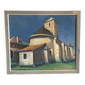 Tableau ancien - Vue sur Chateauneuf les bains - Puy de Dôme - Auvergne