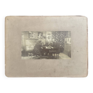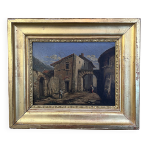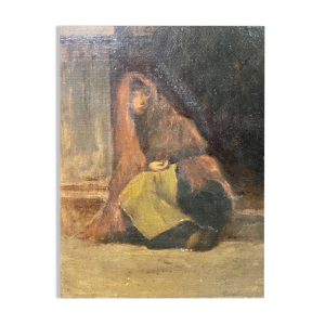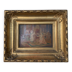 Tableau ancien XIXe – Scène de genre à la dame et l'oiseau