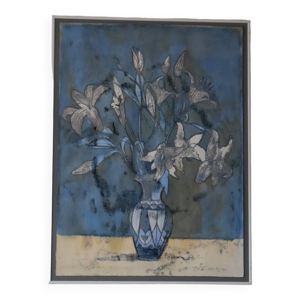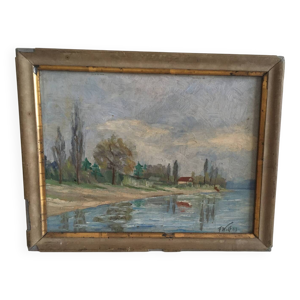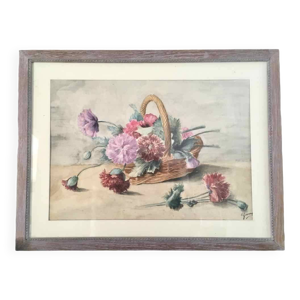 Tableau Aquarelle Bord de mer avec voilier signé daté de 1950 Pays Basque