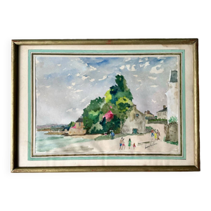 Tableau aquarelle Henry Saint-Clair, paysage marin