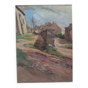 Tableau aquarelle vers 1870 ''la ballade'' signée avec marie louise