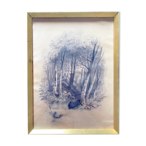 Tableau dessin ''Nymphes se baignant'' Frédéric VILLOT (1809-1875) ami Delacroix