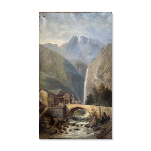 Tableau HST ''Le Village dans la vallée'' début du siècle dernier ec. Pont Aven