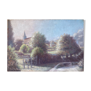 Tableau HST XIX° ''Usine'' Baccarat brasserie avec Serre, Pont Eiffel, Villa