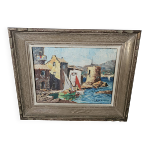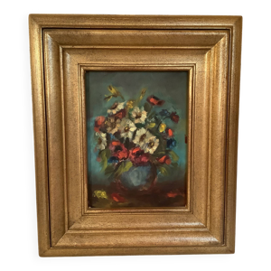 Tableau, huile sur carton « Rivière dans les Alpes »