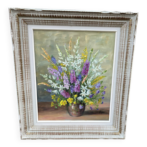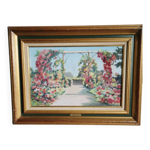 Tableau maison fleurie huile sur toile signée