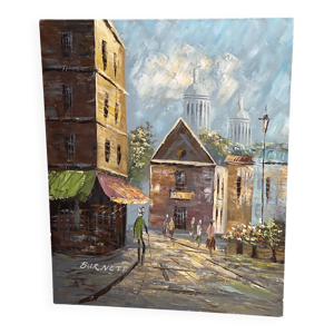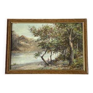 Tableau marine animée d’un bateau fin XIXe début XXe