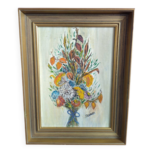 Tableau peinture bouquet de fleurs coloré signé toile moderniste