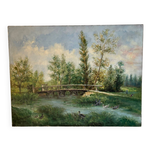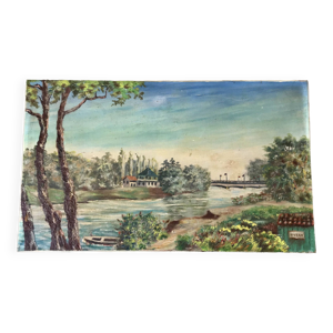 Tableau Pont Napoléon Luz Saint Sauveur 1950 signé