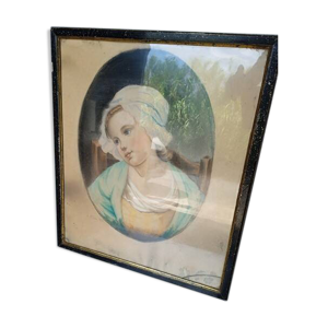 Tableau signé pastel sur papier < Jeune femme > dimension : hauteur -60cm- largeur -75cm-