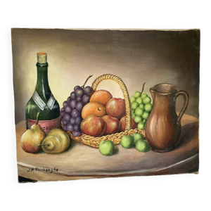 Tableau sur toile nature morte tulipes sur table signé r saintin