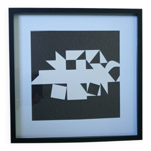 Tableau Vintage Art Optique - Victor Vasarely - Cadre 40x40cm