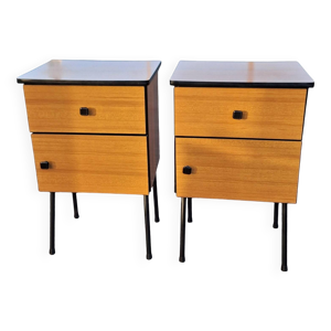 Tables de chevet vintage en bois du milieu du XXe siècle, après rénovation.