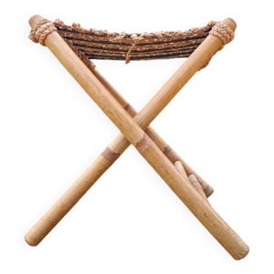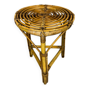 Tabouret en bambou années 50 décoration bois naturelle rotin osier Vintage Porte plante
