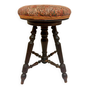 Tabouret Piano bois noir XIX de style Napoleon III tissu restauration tapissière décoration salon
