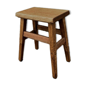 Tabouret tripode rustique et sculptural en chêne, France vers 1850