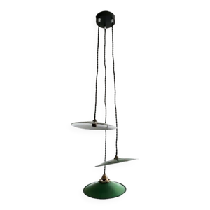 Trio de suspensions tôle émaillée noire et blanche vintage style indus