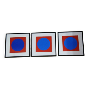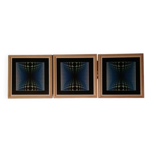 Triptyque Vintage Art Optique - Style Vasarely - Cadre 30x30cm