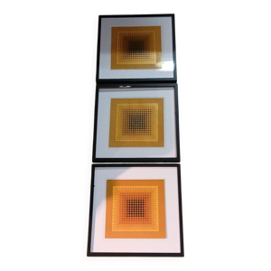 Triptyque Vintage Art Optique - Victor Vasarely - 3 Cadres 30x30cm