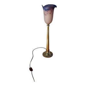 Tulipe de lampe pate de verre art deco signé VIANNE ancien