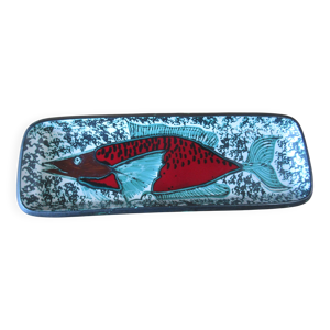 Vallauris - Grand plat ovale « poisson » en faïence et couverte verte