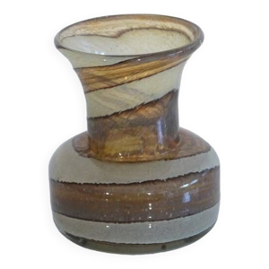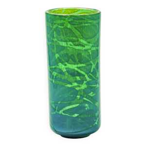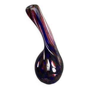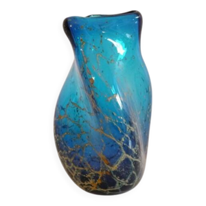 Vase boule, Mdina, Malte, signé, en verre soufflé bleu, année 1983