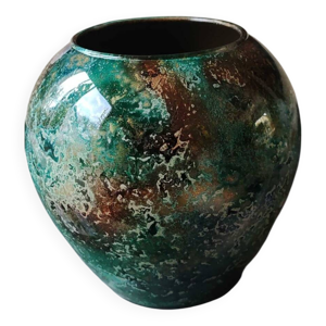 Vase laque line bleu irisé Jean Noël Bouillet