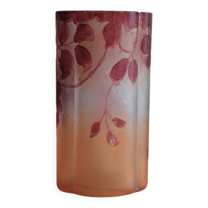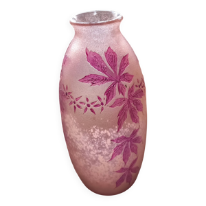 Vase Legras rubis en verre givré degagé a l'acide art nouveau