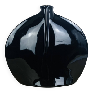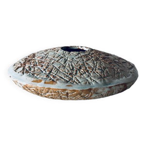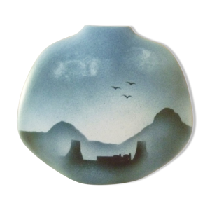 Vase lentille rose, paysage poétique arbre & vol d'oiseaux - Yves Mohy, porcelaine de Virebent - ann