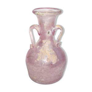 Vase rose, Murano Kristall Mery, verre soufflé avec inclusions